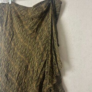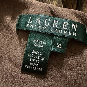 Lauren Ralph Lauren skirt sz XL 100% silk side ruffle brown green career office
