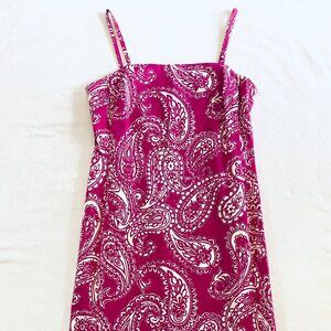 Raspberry, pink, sundress, spaghetti straps, colorful, Paisley, vacation, wedding guest, brunch, cruise, beach, beachy, feminine, comfortable, stretch, preppy