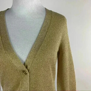 Lauren Ralph Lauren womens sweater size P/P 55% silk gold metallic button down knit v-neck cardigan holiday party