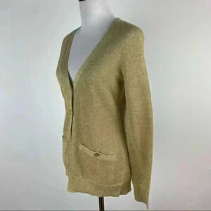 Lauren Ralph Lauren sweater P/P 55% silk gold metallic button down knit cardigan