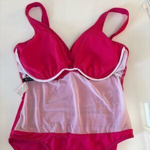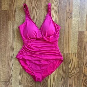 Lauren Ralph Lauren twist front underwire one piece swimsuit pink size 14