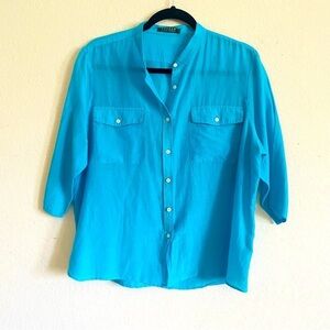 Lauren Ralph Lauren woman button down top size large blue coastal airy light