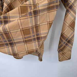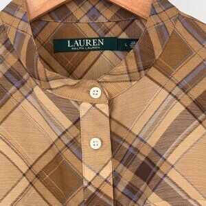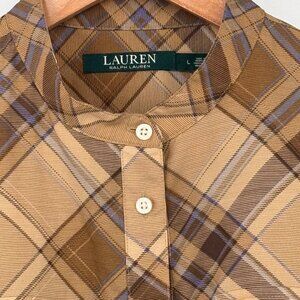 Lauren Ralph Lauren womens Plaid Tan & Brown Band Collar tunic Shirt size large
