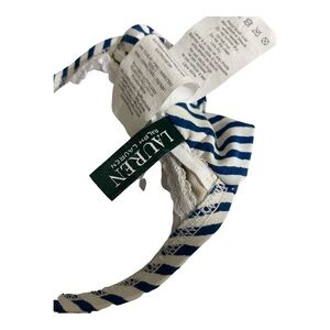 Lauren Ralph Lauren bikini top nautical style blue and white can be worn strapless or tie neck. Beach fun. Size 6