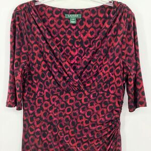 Lauren Ralph Lauren womens red print knit ruched sheath dress Size 10 v-neck