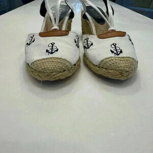 Lauren Ralph Lauren women’s wedge espadrilles. White with navy anchors. Sz 8
