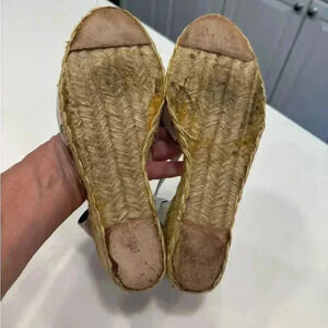 Beautiful pair of summer espadrilles. Wedge heel. White with navy anchors. Elastic strip band for easy on and off.