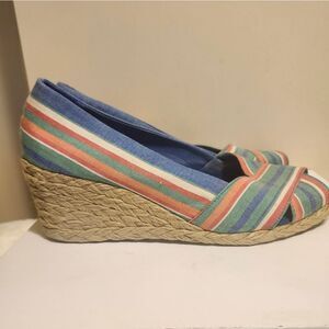 Lauren Ralph Lauren Cecelia Canvas Peep Toe Wedge Heel Espadrilles Sz. 8.5 $195