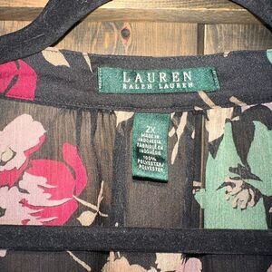 Lauren Ralph Lauren Floral Print Sheer Top Sz 2X Black/Multi