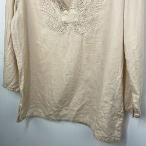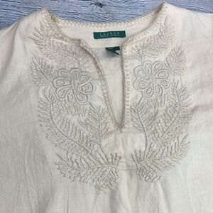 Lauren Ralph Lauren Linen Boho Peasant Top V Neck Embroidered size Large