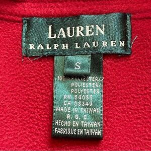 Lauren Ralph Lauren Red Fleece Zippered Vest Size Small. Excellent used condition. Full front zipper closure. 2 front snap pockets. Stand up collar. 100% polyester. Measures chest 40", length 22".