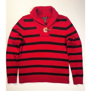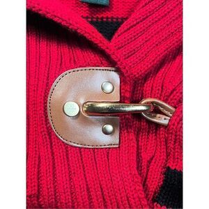 Lauren Ralph Lauren Shawl Collar Sweater Gold Metal Leather Closure Size Medium