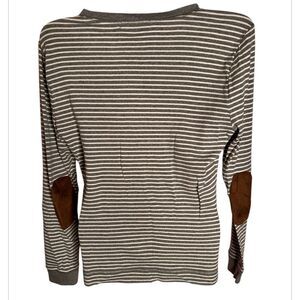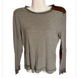 Lauren Ralph Lauren Top Faux Suede Zipper Shoulder Elbow Patch Gray & Ivory