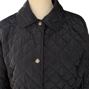 Lauren Ralph Lauren Women's Quilted Snap Front Peplum Jacket Black Size Large