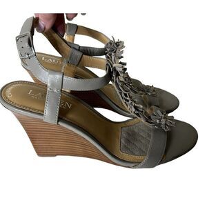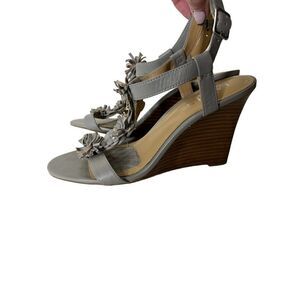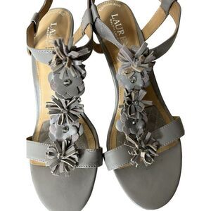 Lauren Ralph Lauren Women’s Wedge Sandals Gray Size 8B With Jeweled Flowers