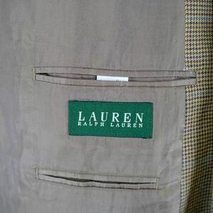Lauren Ralph Lauren Wool Silk Brown Tan Hounstooth W/ Blue Windowpane 48L SPort