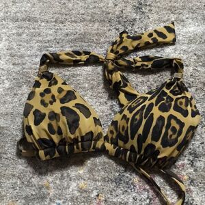 New. I love the leopard print! It has removable gold accents. Ties in the back and around the neck for easy size adjustments. NWOT
