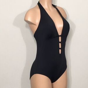 Lauren Ralph Lauren Beach Club Solid Cocktail Halter One Piece Swimsuit 14,16 Black NWT