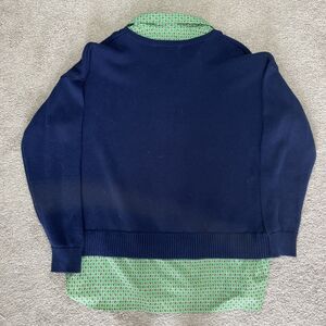 Lauren Ralph Layered Sweater Womens XL V-neck Navy Blue Collared Chunky Knit
