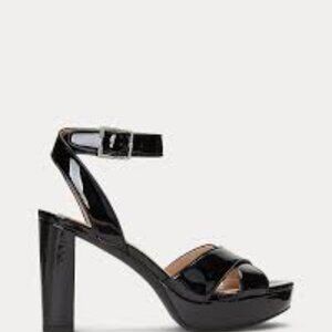 Lauren Ralph Leather Sasha Ankle-Strap Platform Black Dress Sandals sz 9.5B NIB