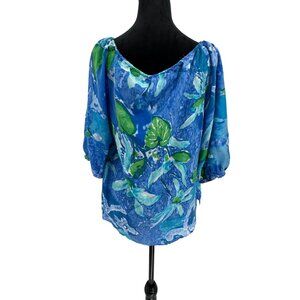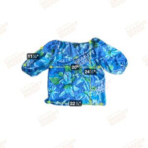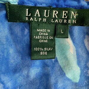 Lauren Ralph Milkmaid Top Womens Size L Silk Floral Watercolor Drawstring Neck
