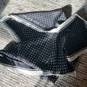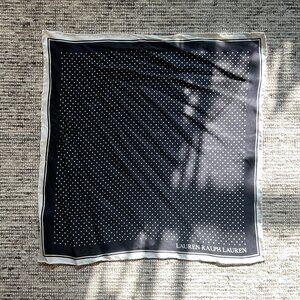 Lauren Ralph Polka Dot Print Silk Head Scarf Square 22″ X 22″
