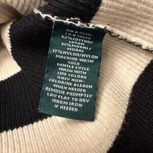 Lauren Ralph Striped Sweater M Black White Bell Sleeve Knit Pullover Preppy