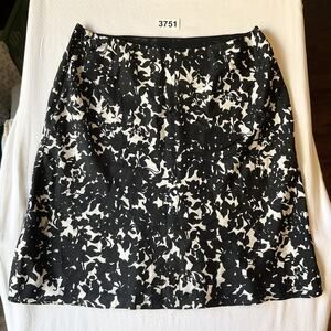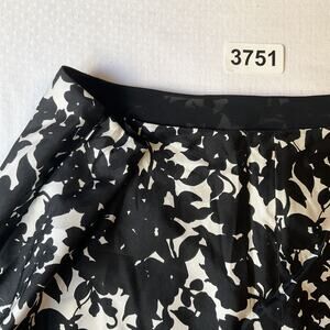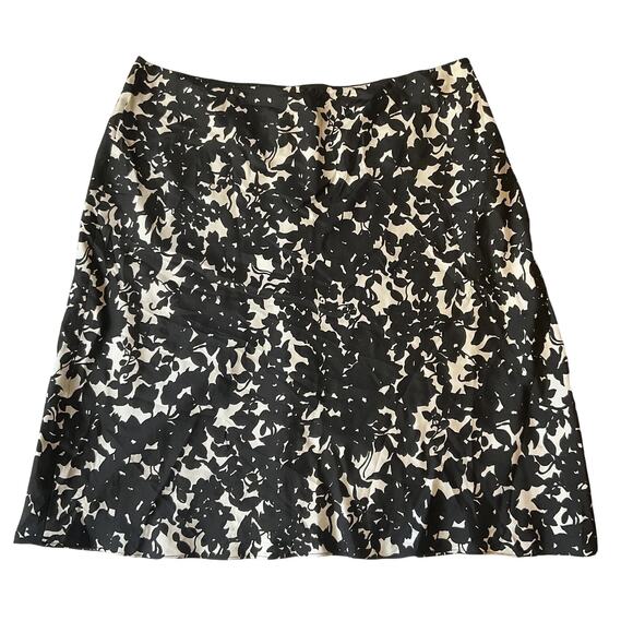 Lauren Ralph Women Silk Skirt 12 Black White Floral A-Line Lined Knee Length