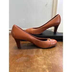 Lauren Ralph Womens 9B Brown Heel Highs Gold Buckle Accent Career Wear FLAWNEW