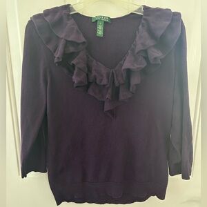 Lauren Ralph Women’s Deep Purple Ruffle Sweater Top Size Large