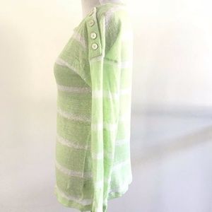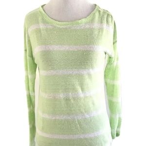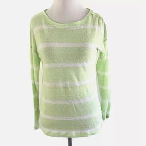 Lauren Ralph Women's Size L Crewneck Pullover Sweater Striped 100% Linen Green