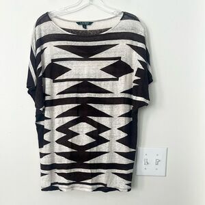 Lauren Ralph Lauren Aztec Pattern Linen Top L