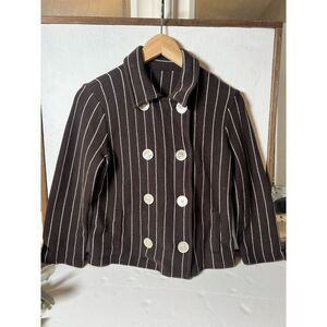 Lauren Ralph Lauren Blazer Woman’s Petite Small Brown Striped, Knit Academia