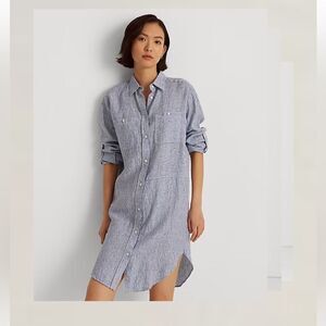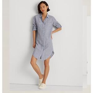 Lauren Ralph Lauren Blue Stripe Linen Shirt Dress Size XXL