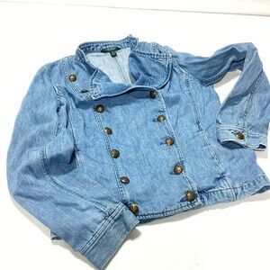 Lauren Ralph Lauren Double-Breasted Denim Jacket Military Bib Jean Jacket 6