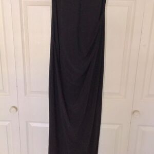 This sophisticated black gown by Ralph Lauren features a sleeveless design and a crew neckline, perfect for a night out or cocktail event. The floor-length maxi dress is enhanced by a stylish slit, adding a touch of elegance and movement to its minimalist silhouette.