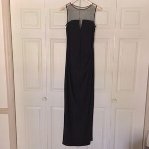 Lauren Ralph Lauren Evening Black Mesh Sleeveless Slit Maxi Gown