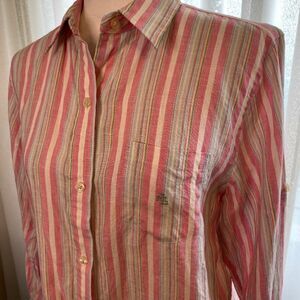 Lauren Ralph Lauren Linen Striped Button Front Long Sleeve Blouse SZ M