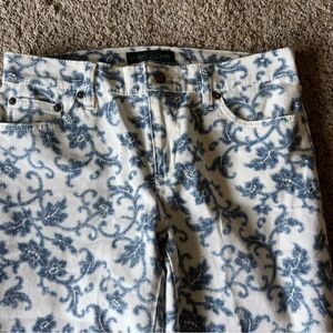 Lauren Ralph Lauren Mid Rise White Blue Floral Modern Straight Jeans Size 6