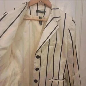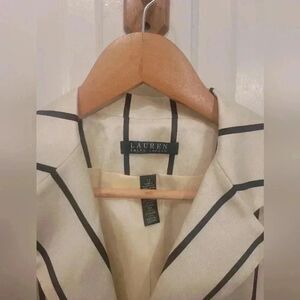 Like New Lauren Ralph Lauren Striped Blazer Size 12. 90% Cotton / 10% Silk. High-quality material and luxurious design! Feel free to message me with any other questions. 🙂