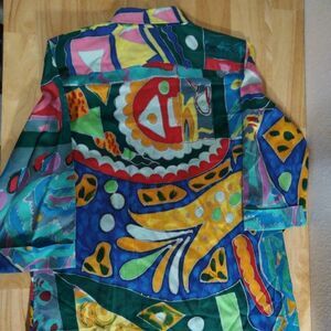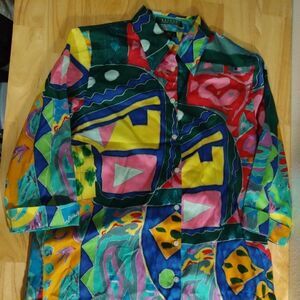 Lauren Ralph Lauren Abstract Geometric Pattern Blouse Button Down Shirt, Size Small - Measures p2p=20" Length=28" - Excellent Condition, No Flaws