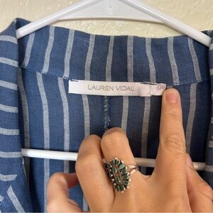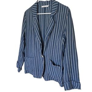 Lauren Vidal linen blend casual blazer style navy and white stripe jacket. Size medium in like new condition.