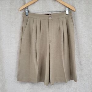 Lauren Woods Vintage High Waisted Trouser Shorts Tan Pleated