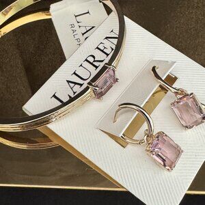 Lauren bracelet and earring set with light purple stones in gold tone setting.