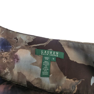 Lauren by Ralph Lauren 100% Silk Brown Cream & Blue Floral Skirt - Size 16