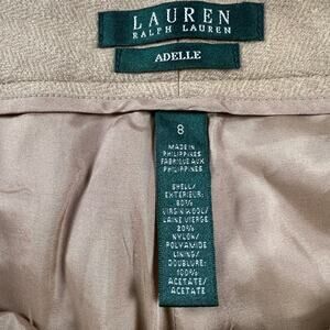 Lauren by Ralph Lauren Adelle Virgin Wool Tan Herringbone Dress Pants Size 8