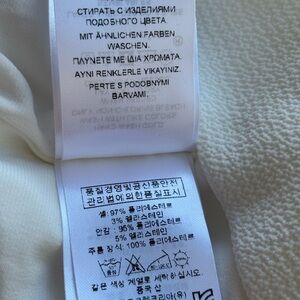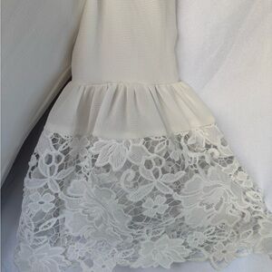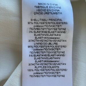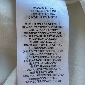 Color and Material: The dress in the image is white/cream, and the material is typically a blend, such as 97% Polyester and 3% Elastane or 73% Cotton, 24% Nylon, and 3% Other Fiber, with a full lining.