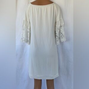 Lauren by Ralph Lauren Cream Crepe Shift Dress With Lace Bell Sleeves