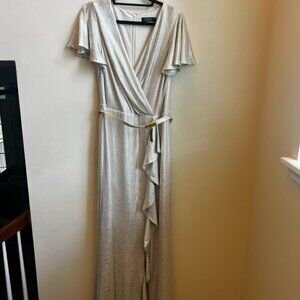 This is a stunning faux wrap gold dress by Lauren by Ralph Lauren, NWT, size 14