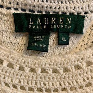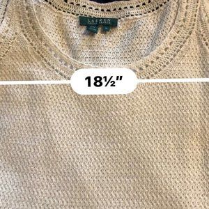 Lauren by Ralph Lauren Sleeveless Knit Tank in extra large. Great versatile piece to wear alone as a spring / summer top or under a cardigan or blazer with business attire. Measurements provided, but it does have a generous stretch to it. As with most Ralph Lauren pieces, the detailing is elegant. No damage or stains noted. Care: Hand wash cold and lay flat to dry. This listing is for top only. Jacket sold separately and can be bundled if desired.